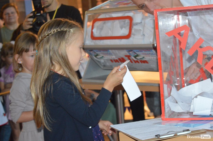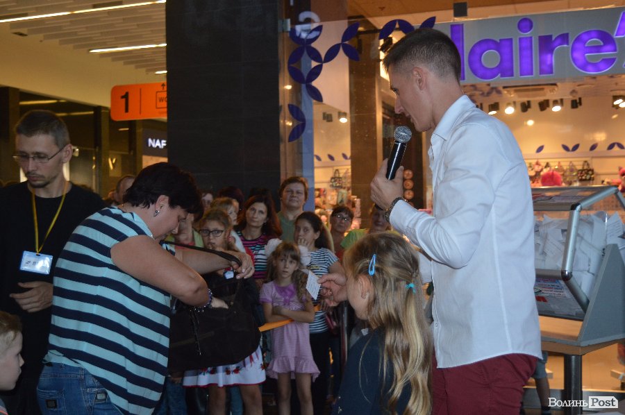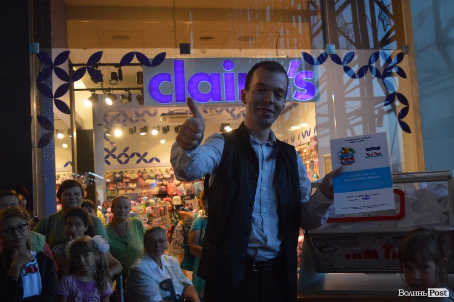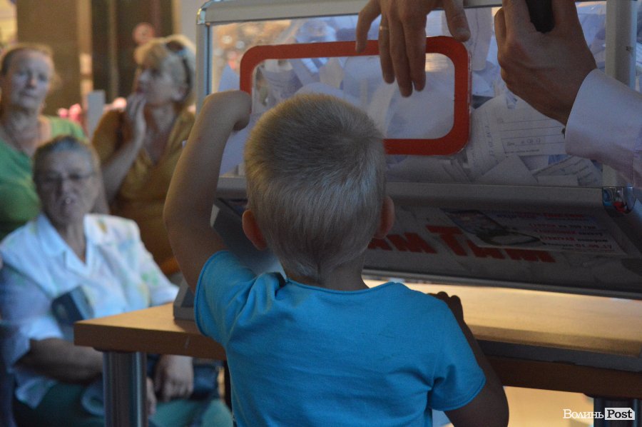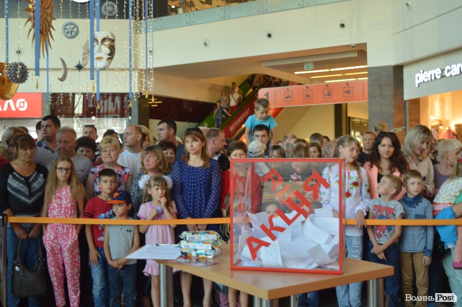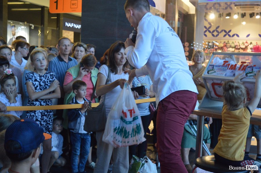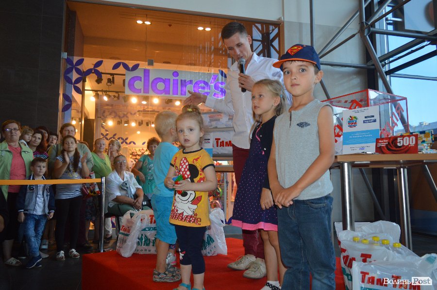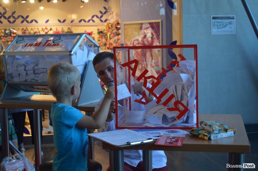 Ведучим розіграшу був Віталій Поліщук. Він крутив лототрон, а п’ятеро маленьких лучан витягали анкети. Згодом за допомогу вони отримали солодощі.