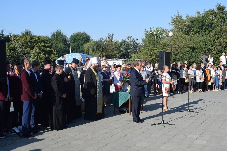 Привітати школярів із Днем знань на «лінійку» завітали митрополит Луцький та Волинський УПЦ КП Михаїл та перший заступник міського голови Луцька Григорій Недопад.