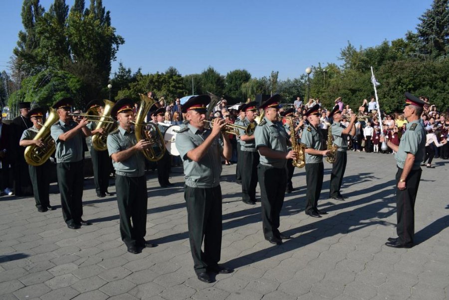 Духовий оркестр нацгвардійців виконав гімн України, а також продемонстрував виступ-дефіле, виконавши для учасників свята патріотичні та розважальні композиції. За майстерний виступ вчителі, школярі та батьки подякували військовим музикантам гучними оплесками.
