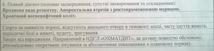 Біда спіткала малюка від самого народження. Лікарі поставили невтішний діагноз: вроджена вада розвитку, аноректальна атрезія з ректопромежинною норицею, хронічний неспецифічний коліт, - пише Район.Рожище.