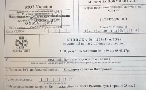 За словами мами, першу операцію зробили 14 серпня в Національній дитячій спеціалізованій лікарні «Охмадит», що у Києві. Наступна - 13 листопада цього року. Якщо пощастить, то третя операція позбавить малюка від вроджених вад.