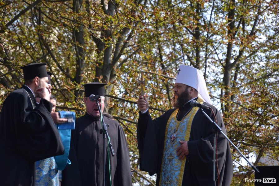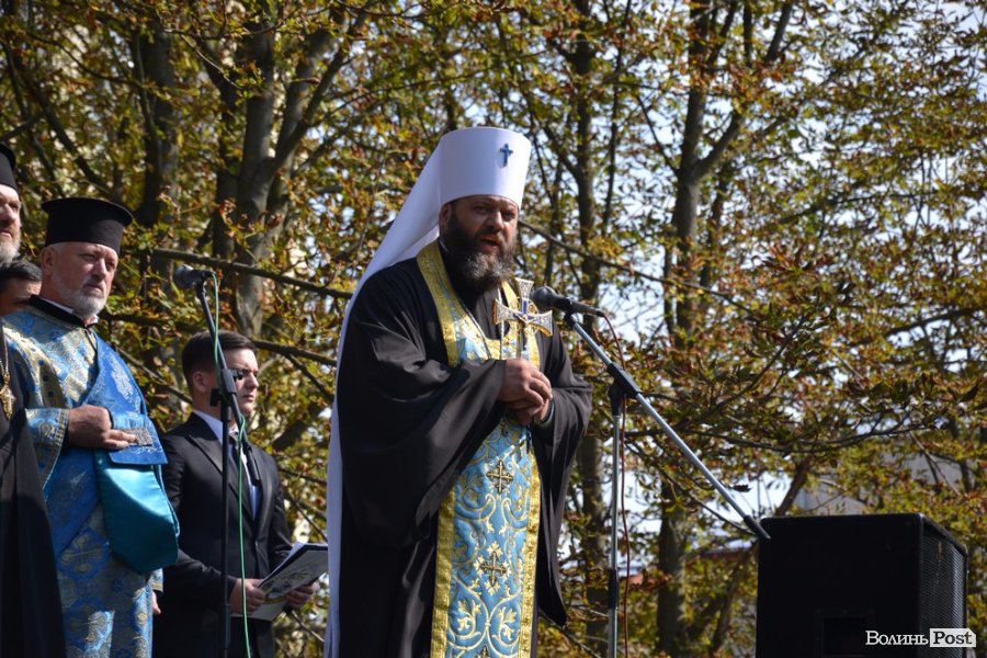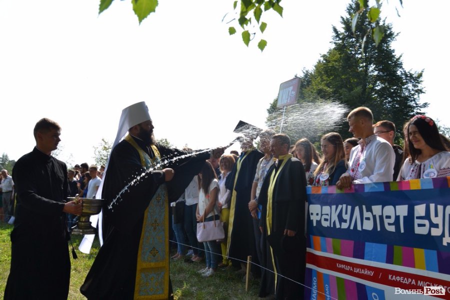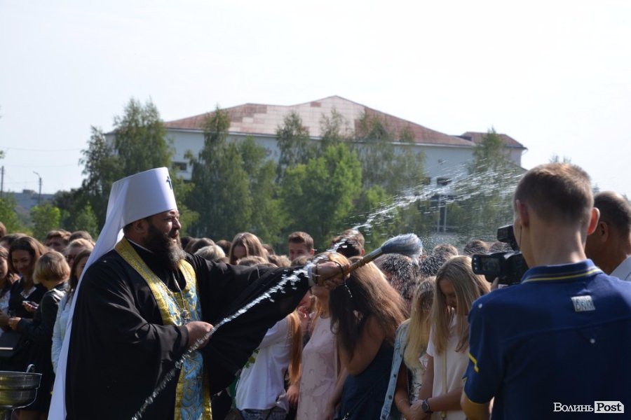 Вже майже студентів поблагословив владика Луцький та Волинський Миїхал, який після молебню і короткої проповіді рясно покропив студентів, їх рідних та гостей свята освяченою водою.