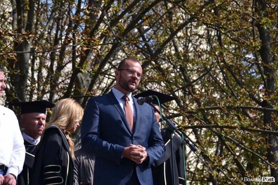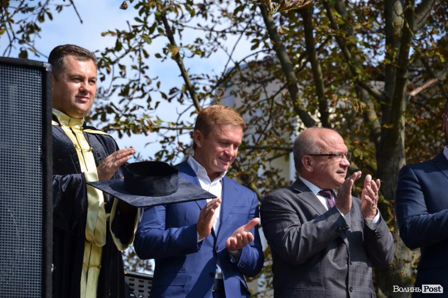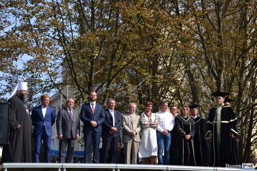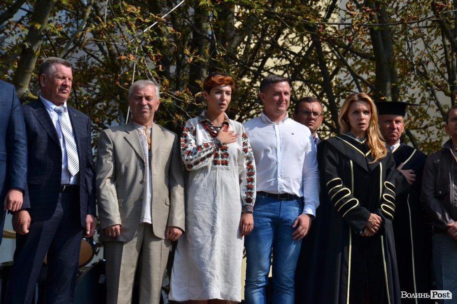 Далі привітали першокурсників і голова Волинської обласної держадміністрації Володимир Гунчик та депутат Луцькради Ігор Поліщук. Бажали вдячності до батьків та викладачів, наснаги до навчання та отримати у виші гарний фундамент для подальшого зростання. Після вітань на гостей дійства чекали співочі та танцювальні виступи студентів ЛНТУ.