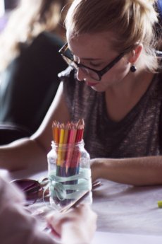 Після невеликої перерви на учасників чекало теоритичне заняття. Письменниця розповіла про основи написання та особливості побудови драматичного твору. Після цього усім присутнім роздали білі аркуші паперу та кольорові олівці, кожен з них мав вигадати та намалювати казкового персонажа. Згодом учасники майстер-класу разом з Недою Нежданою придумали власну казку.