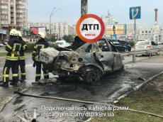 У Києві на одній з вулиць автомобіль внаслідок аварійної ситуації вибухнув і згорів за 2 хвилини після того, як влетів у стовп.