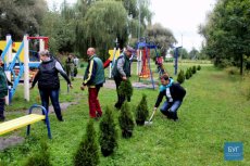 “Сьогоднішня акція називається “Добре дітям – добре і батька”, вона відбувається в рамках проекту “Вол&Ков&Тур”, який ми спільно виграли з Ковельським, Турійським районами та нашим містом Володимиром-Волинським. Ми кинули клич, але туя це дуже примхлива рослина, то ми дивилися щоб сприяла погода. Також просити будемо батьків, які тут проводять час з дітками, якщо буде можливість, то поливати туї, їм потрібно багато води,” – розповіла Любов Саць.