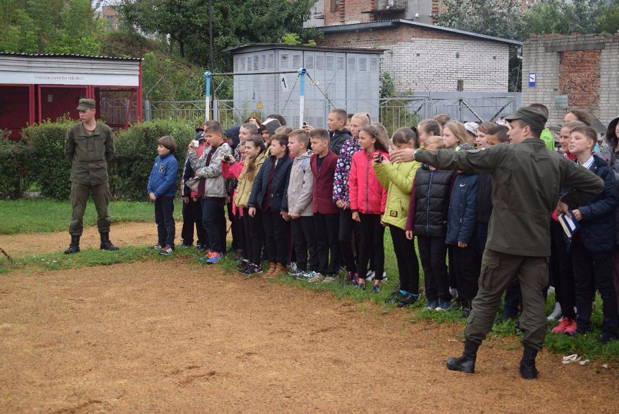 У клубі військової частини офіцер групи по роботі зі особовим складом старший лейтенант Віктор Куртін провів презентацію навчальної зброї, зокрема автомата Калашникова, кулеметів та РПГ, а також пояснив основні правила безпеки при поводженні зі зброєю. Учні мали нагоду особисто ознайомитися та сфотографуватися зі нею.
