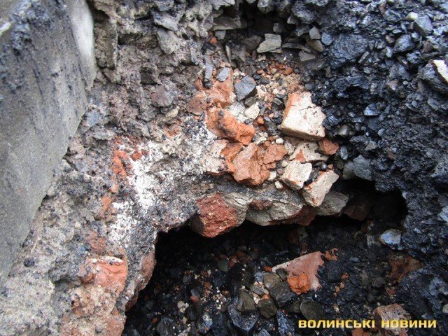 На вулиці у Володимирі провалився асфальт, відкривши древній підвал