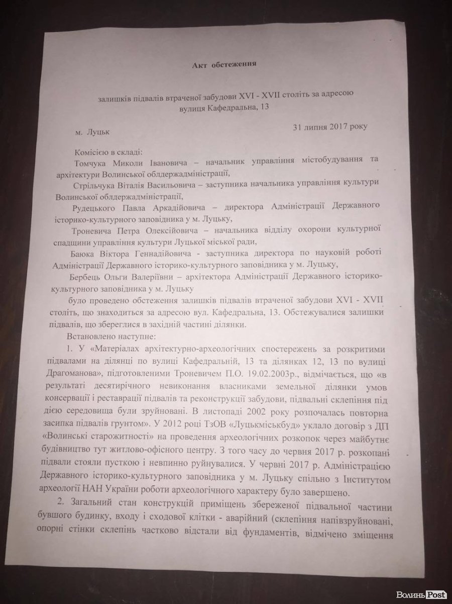Нагадаємо, у 2012-му році ТЗОВ «Луцькміськбуд» уклало договір із ДП «Волинскі старожитності» на проведення археологічних розкопок через майбутнє будівництво там житлово-офісного центру. Лучани були проти такого будівництва та бояться, що воно зруйнує історичну пам’ятку.