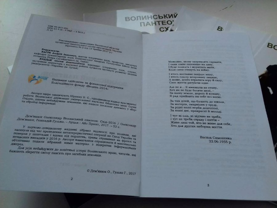 «Волинський пантеон: Схід - 2016»: книга про загиблих атовців