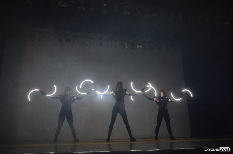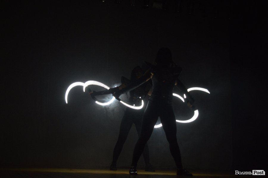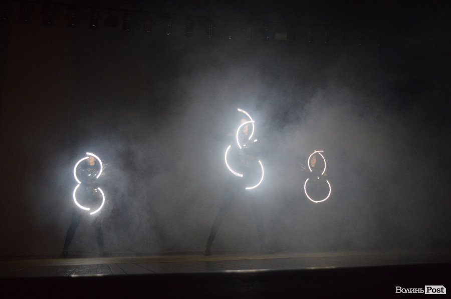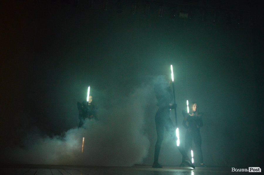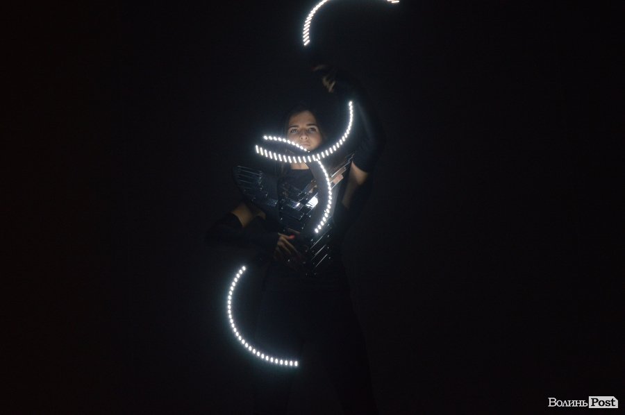 Також виступили учасники світлового шоу «Леденс», які жестикулювали жезлами зі символікою фестивалю.