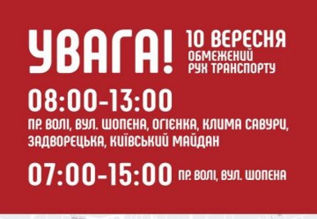 10.09.2017 ОБМЕЖЕНИЙ РУХ ТРАНСПОРТУ: