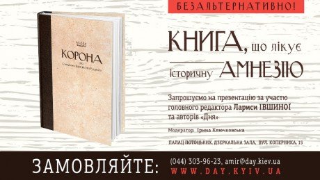 О 12:00 в рамках Львівського форуму видавців відбудеться презентація книжкової новинки «Дня» «Корона або Спадщина Королівства Руського». Місце – Львів, Палац Потоцьких, Дзеркальна зала, що знаходиться за адресою вулиця Коперника, 15.