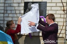 Пам'ятну дошку відкривали двоє однокласників хлопця Богдан Данилюк та Вікторія Шульга.