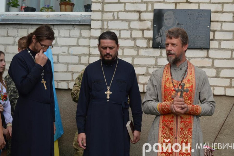 Священники Маневицького благочиння прочитали молитву та освятили меморіальну дошку.