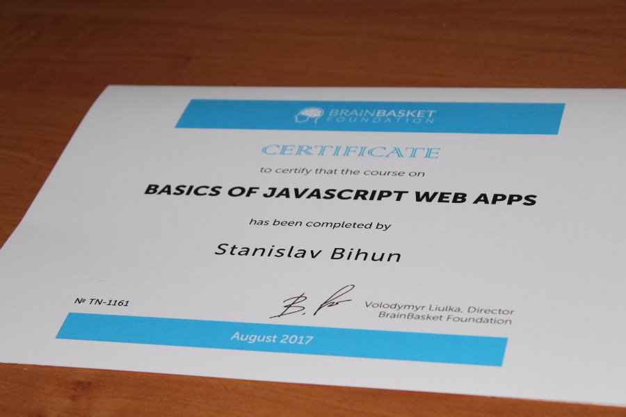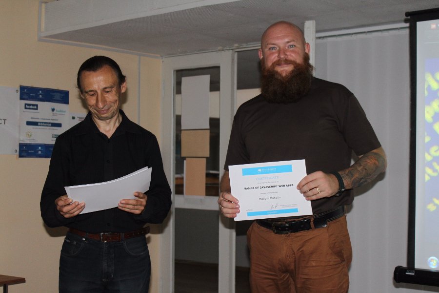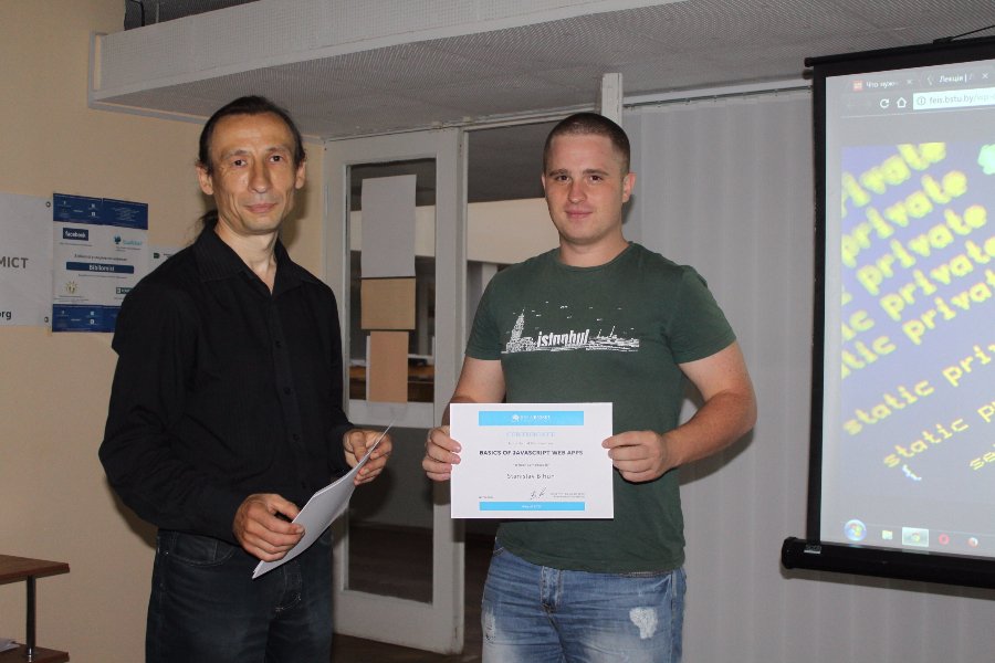 Чотири місяці тому більше десяти атовців з Луцька зголосилися взяти участь в соціальному освітньому проекті «Coding for Future» під егідою фонду «BrainBasket», в рамках якого вивчали мову програмування JavaScript. А вже 11 вересня ті, хто успішно здолав всю дистанцію, отримали сертифікати. Це, зокрема, Станіслав Бігун, Максим Бутолін, Ігор Диня, Олександр Кролік та Андрій Пушкарський.