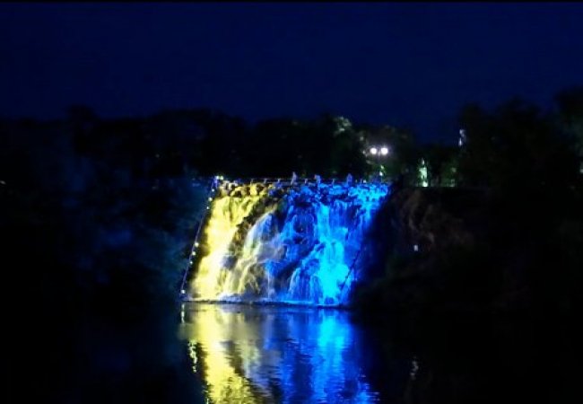 На Дніпрі з'явився яскравий патріотичний водоспад "Поріг ревучий".