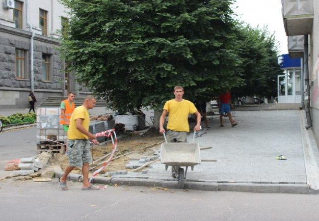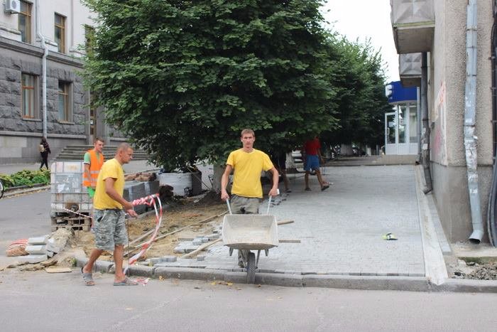 Ремонт відбувається на відрізку вулиці від головного корпусу СНУ Лесі Українки до вулиці Винниченка. Роботи виконують працівники підприємства “Вишків-брук”.