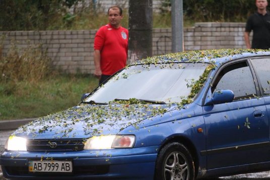 За інформацією ресурсу, близько 18:30-18:40 вся західна частина Вінниці відчула на собі міць стихії – пройшла потужна злива з градом, розміри якого можна порівняти зі сливами.