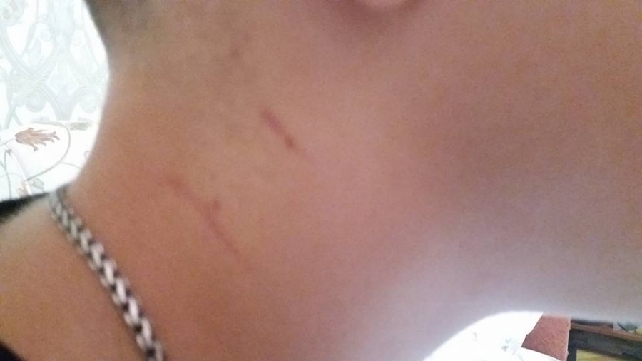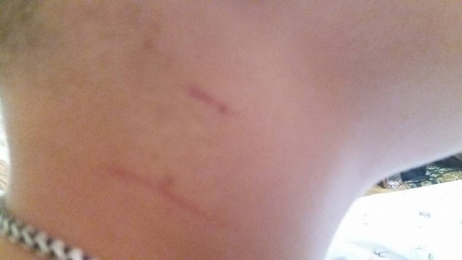 Вона зазначила, що в результаті у її сина на шиї залишилися сліди.