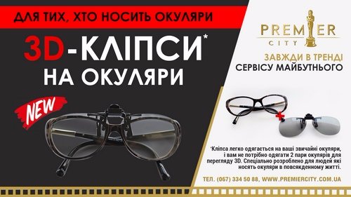 Зазвичай, ідучи у кінотеатр люди, які щодня носять окуляри готували себе до невеликого дискомфорту, адже кілька годин окрім власного аксесуару мали надягати додатково 3D-окуляри. Відтепер дивитися фільми стане комфортніше, адже вперше у Луцьку у кінотеатрі "PremierCity" можна придбати спеціальну кліпсу.