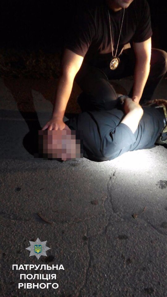 Під час затримання водія, який мав явні ознаки алкогольного сп'яніння, тілесні ушкодження отримав начальник УПП в м. Рівному ДПП, старший лейтенант поліції Сергій Мерчук, який першим помітив автомобіль і слідував за ним, поки не приїхала підмога.