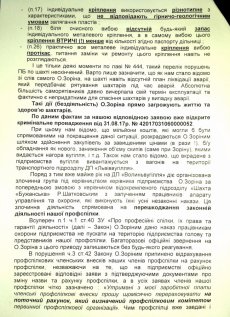 (п.4) покрівля очисного забою незадовільна та не витримує жодної критики, контроль за її станом та щозмінне обстеження не проводяться, на сьогоднішній день лава обрушена, чим підприємству та державі вже завдані економічні збитки. Але в ці виробки і сьогодні О.Зорін посилає працювати шахтарів;