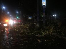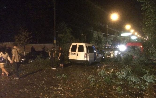 Дерева, що впали, на деякий час заблокували рух на вулиці Галицький шлях. На вулиці Комарова вітер повалив білборд.