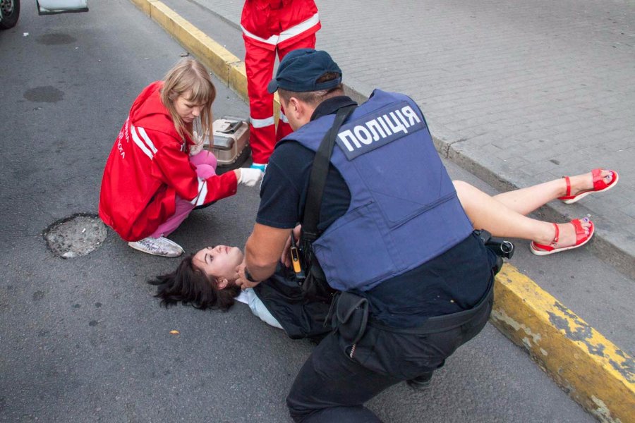 До приїзду «швидкої допомоги» патрульні підтримували дівчині голову, щоб звести до мінімуму негативні наслідки в разі пошкодження хребта.