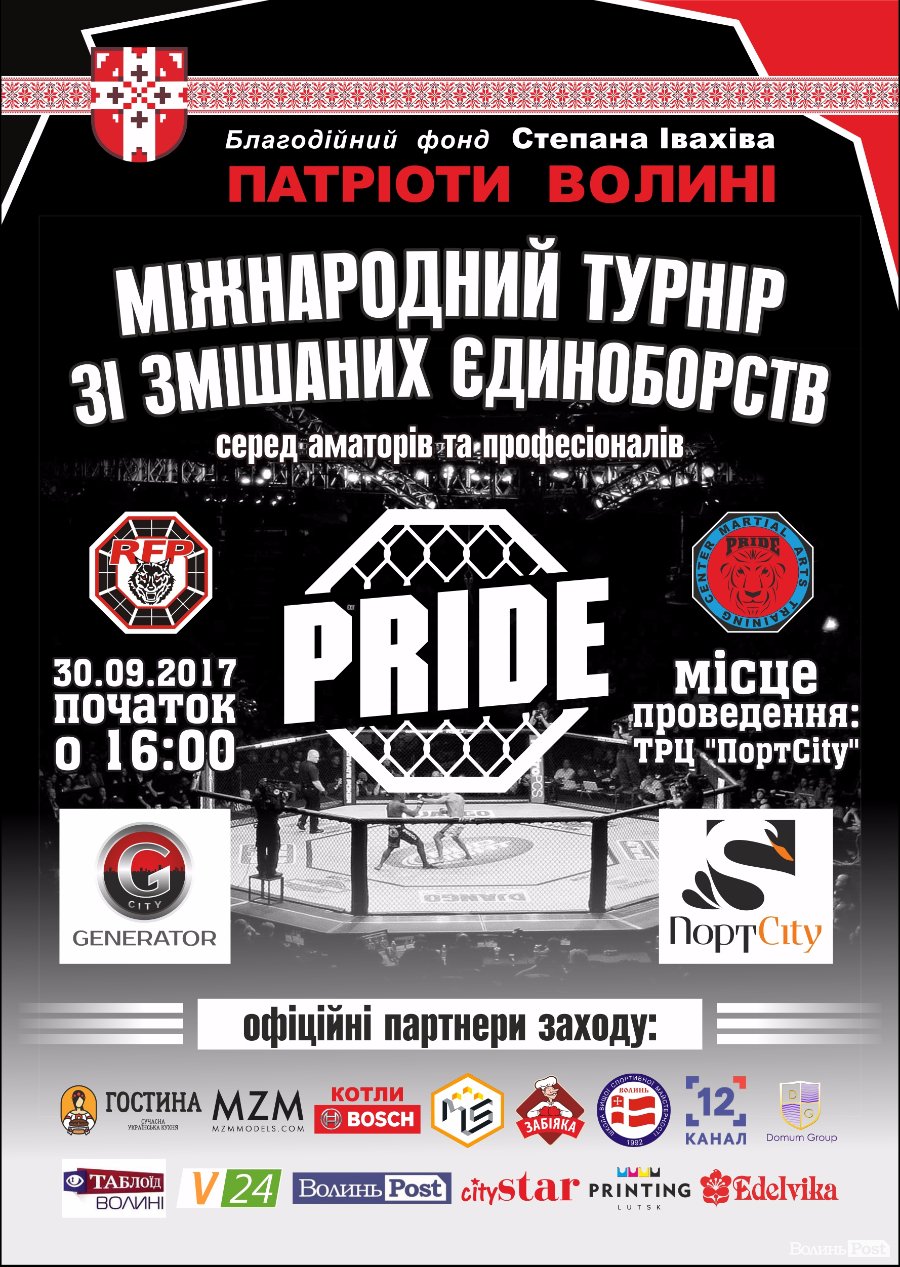 За підтримки благодійного фонду Степана Івахіва «Патріоти Волині» у ТРЦ «ПортCity» відбудеться міжнародний турнір зі змішаних єдиноборств «PRIDE».