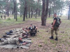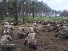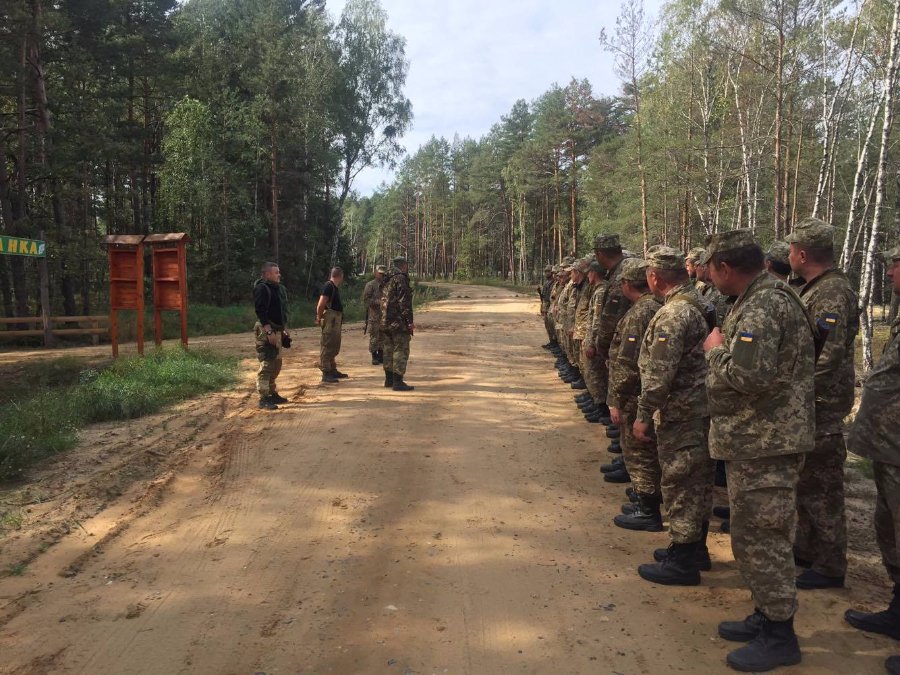 У лісах військкомат організував базу для вишколу - тут облаштували намети, їдальні, спеціальні місця для кидання бойових ганат, тир для віпрацювання навиків стрільби із пістолета та автомата тощо.