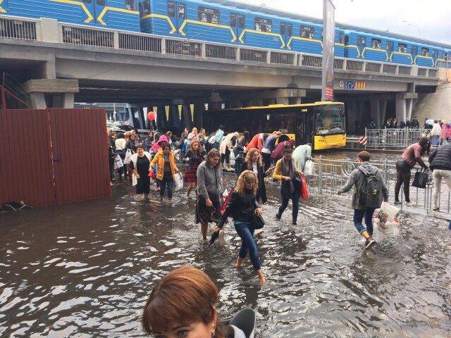 Так, за інформацією 44.ua, біля станції метро «Лівобережна» тротуар повністю залило водою, – повідомляє 112 канал.