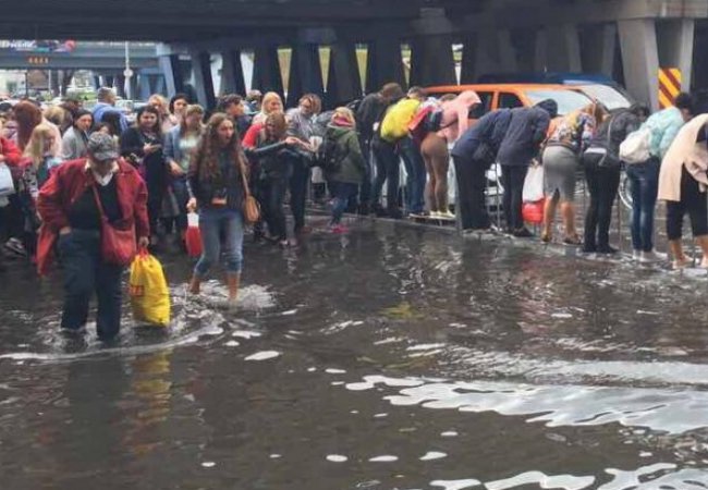 У результаті сильної зливи деякі київські вулиці затоплені.