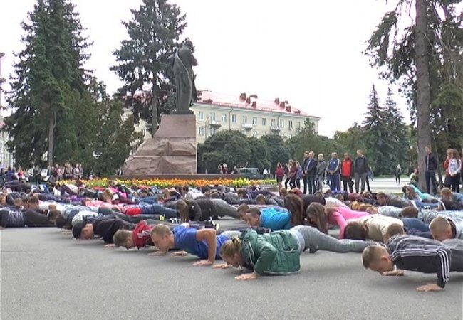 Після загального шикування та спільного виконання державного гімну точно о 12:30 десятки тисяч студентів по всій Україні одночасно виконали вправу зі згинання і розгинання рук лежачи.