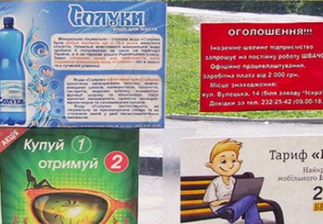 «За останні дні звернув увагу на поклейку реклами в маршрутках. Клеять все і всюди) Від «куплю зламок» до «виставки риб» в палаці молоді», – пише Олександр Середа.