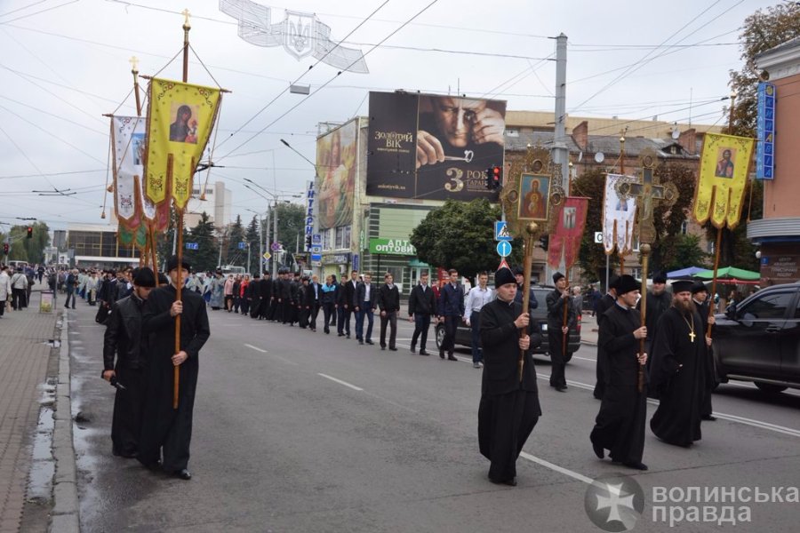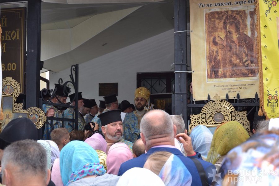 «Цей чудотворний Холмський образ є однією із чотирьох апостольських ікон Божої Матері. Перша із них – Вишгородська, нині Володимирська, друга – Белзька, нині Ченстоховська, і ці образи нині перебувають у сусідніх державах. Ікона Успіння Пресвятої Богородиці перебувала у Києво-Печерській Лаврі, але у 1941 році, коли був підірваний Успенський собор, ця святиня була втрачена. І лише об цей Холмський образ залишився із нами. Ми сьогодні прийшли вшанувати цей святий образ, попросити у Матінки Божої миру для нашої України, піднести молитви за наших рідних і близьких», – сказав у своїй проповіді, канцлер Волинської єпархії УПЦ КП протоієрей Миколай Цап.