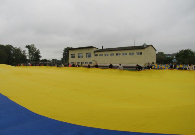 У Турійську на стадіоні «Колос» розгорнули найбільший прапор України у світі, який має 60 метрів довжини та 40 ширини і площею приблизно 2 400 метрів квадратних.