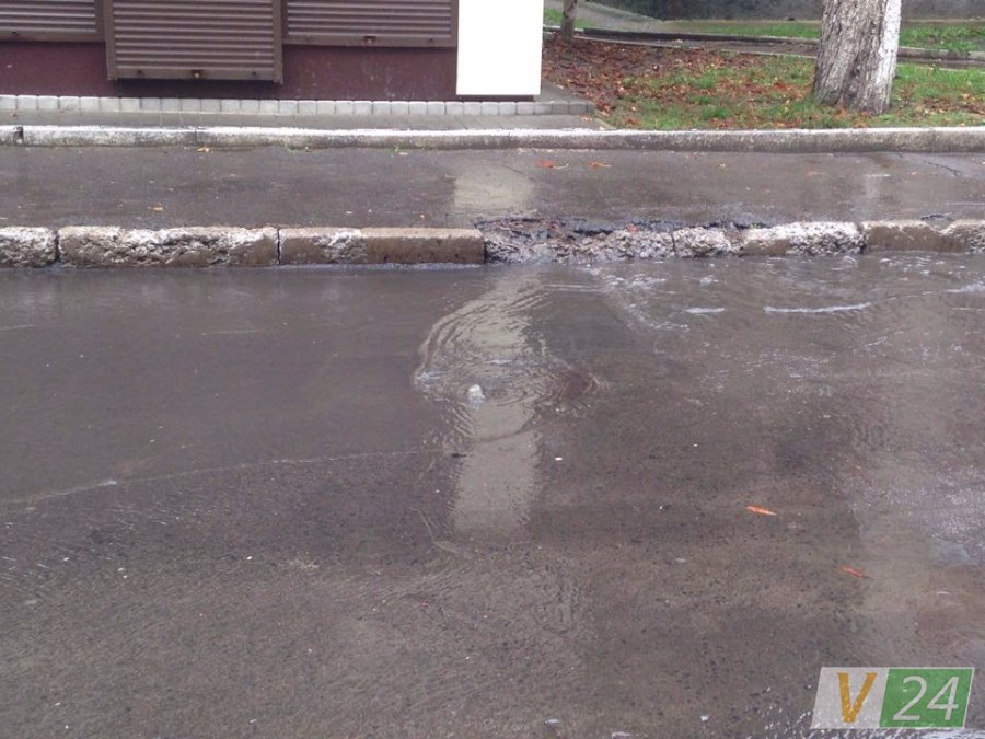 У Луцьку поблизу 9-ї школи посеред вулиці утворилось «море», з якого б'ють фонтани.