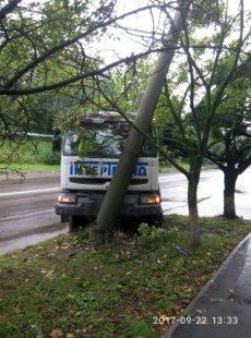 На вулиці Конякіна в Луцьку вантажівка Renault врізалася в електроопору. Про постраждалих не повідомляється.