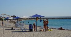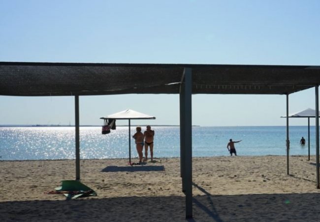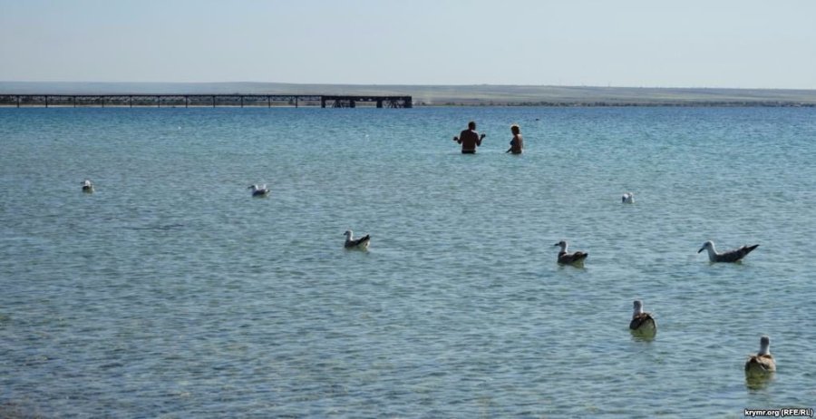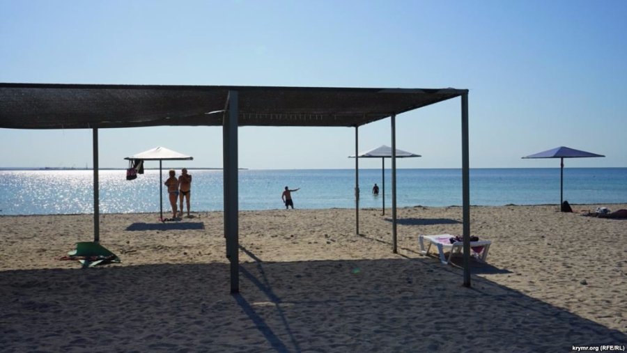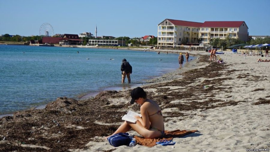 "Єдина сімейна пара з маленькими дітьми на пляжі. Раніше у вересні тут було багато відпочиваючих з материкової України та з Білорусі. На пляжі можна побачити хіба що нечисленних пенсіонерів і бюджетників з російського Сибіру", – кажуть кримчани.