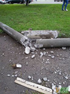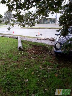 Автомобіль влетів у бетонну конструкцію стовпа, продовжив рух і зупинився лише після того, як врізався в дерево.