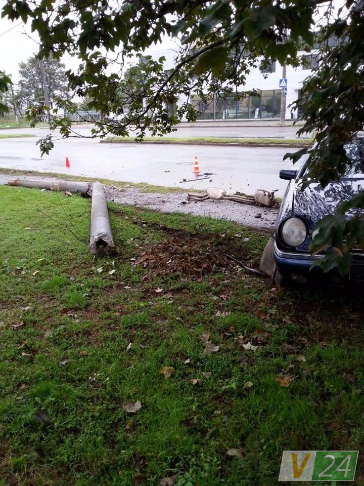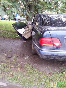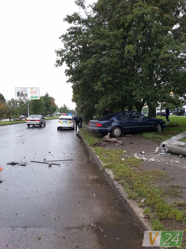 Водій автомобіля Mercedes зніс електроопору і вдарився в дерево.
