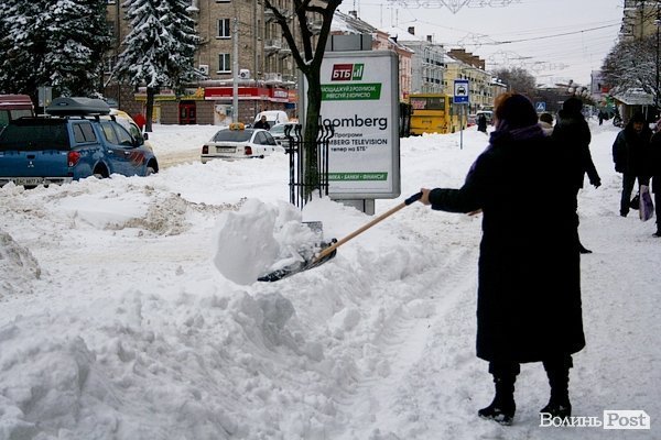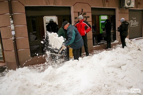 Після сильних снігопадів, які не припинялися протягом двох днів, 17 грудня в понеділок лучани стали активно розчищати під’їзди і підходи до установ, фірм, організацій.