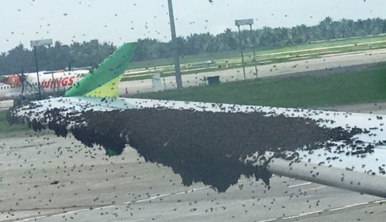 В індонезійському аеропорту Куала-Наму на острові Суматра величезний рій бджіл затримав виліт літака авіакомпанії Citilink.
