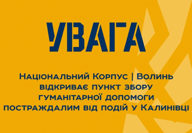 «Національний корпус Волинь» відкриває пункт збору гуманітарної допомоги постраждалим від подій у Калинівці.