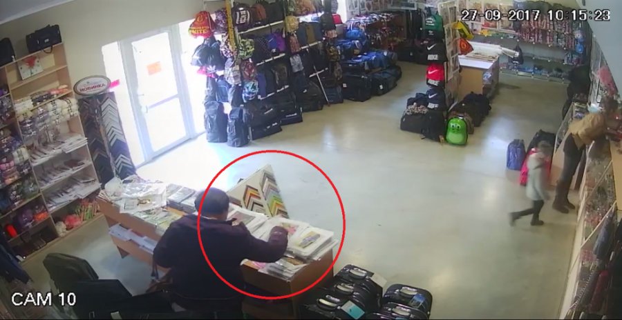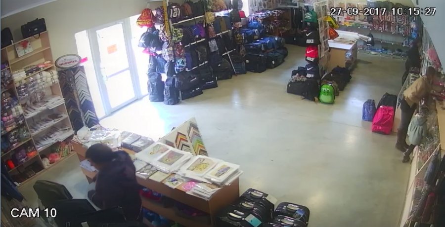 З’ясувалося, що крам викрала покупець. На записі камери відеоспостереження чітко видно, як старша жінка, привітно спілкуючись із продавцем та ще однією жіночкою, тихцем засовує в кишеню бісер, а коли впевнилась, що на неї ніхто не дивиться - кладе до сумки й заготовки для вишивки бісером.