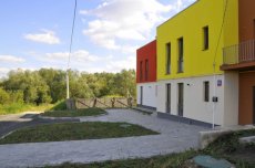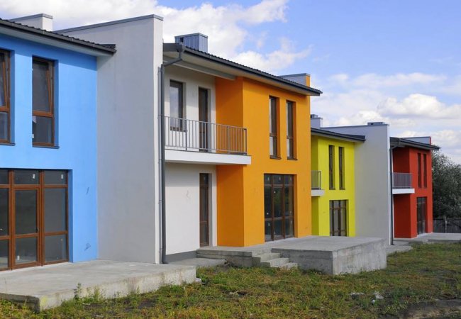 Фасад будинку оздоблений кольоровою декоративною фарбою, що допоможе Вам відволіктися від щоденних сірих буднів та гарантовано створюватиме позитивний настрій щодня.