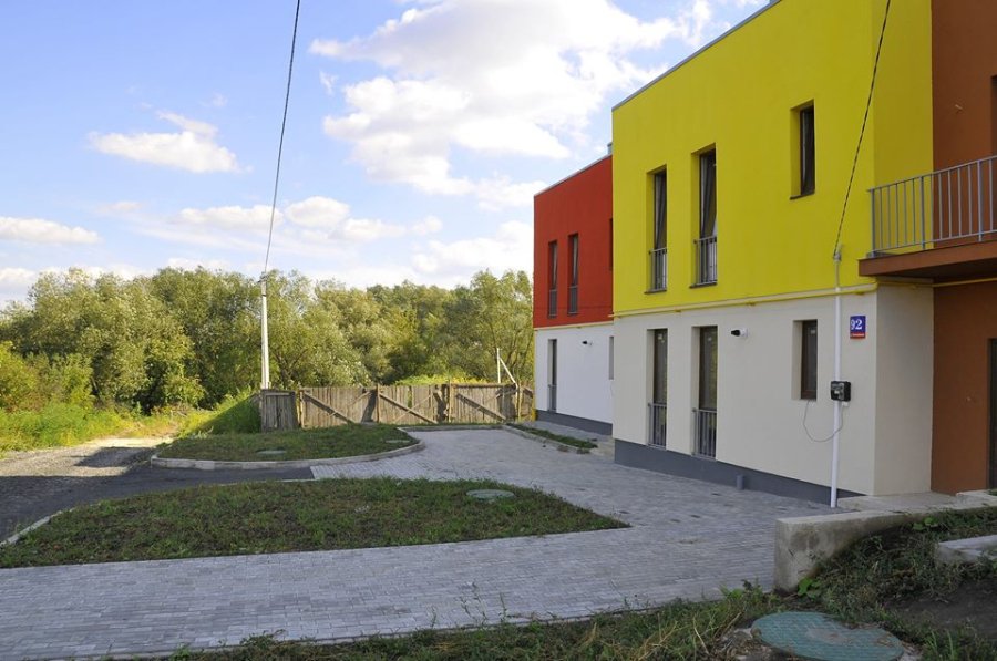 Поруч з таунхаусом облаштована бруківкою прибудинкова територія та індивідуальне паркомісце для кожного щасливого власника нового житла.