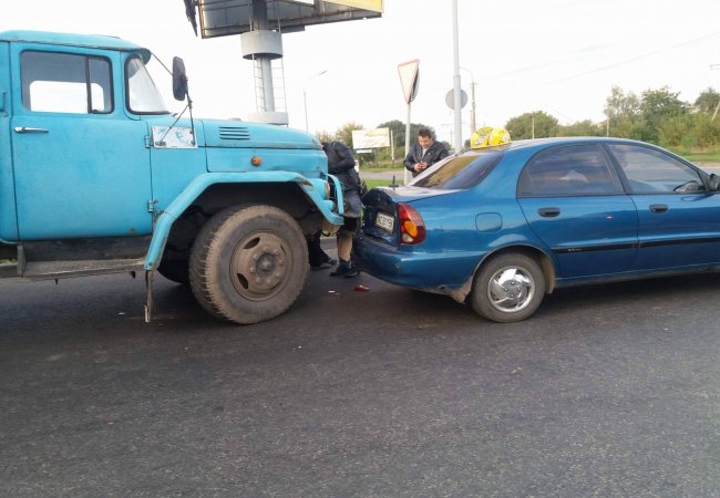 Вантажний автомобіль в'їхав у задню частину таксі марки Daewoo Lanos.