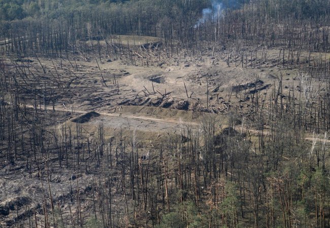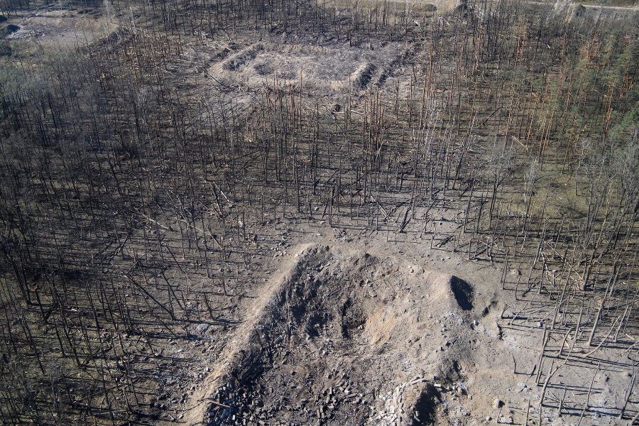 Згорілі військові склади у Калинівці та територію біля них показали з висоти пташиного польоту.